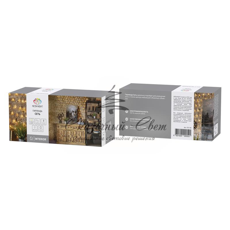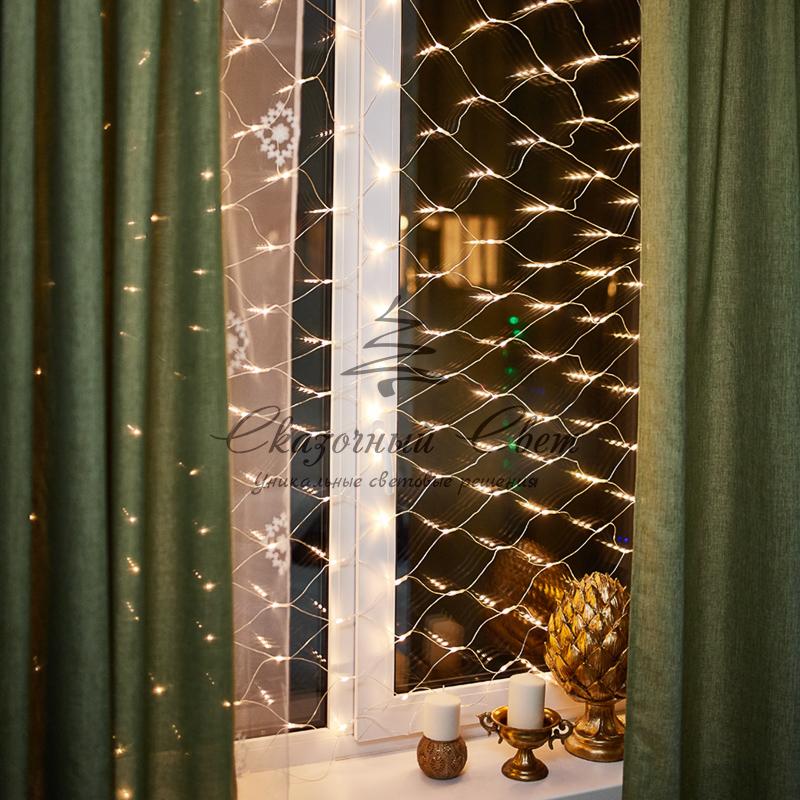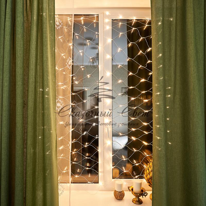 Гирлянда "Сеть" 1,8х1,5м, прозрачный ПВХ, 180 LED ТЕПЛЫЙ БЕЛЫЙ купить в интернет-магазине Сказочный свет