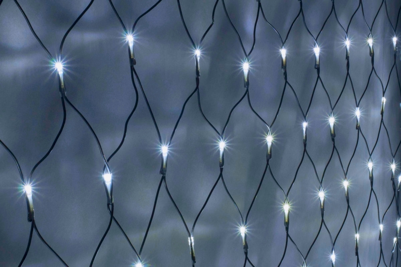 Гирлянда Сеть (светодиодная сетка, гирлянда-сетка) надежно защищена от попадания влаги, пыли, грязи внутрь корпуса. Декоративное украшение успешно переносит пониженную или высокую температуру, прямые солнечные лучи, поэтому допускается монтаж на улице.