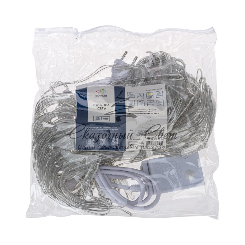Гирлянда Сеть 2х2х1.5 м, свечение с динамикой, прозрачный ПВХ, 136 LED, 230 В, цвет свечения теплый белый купить в интернет-магазине Сказочный свет