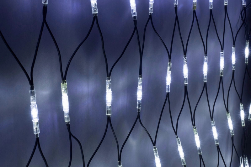 Гирлянда Сеть (светодиодная сетка, гирлянда-сетка) надежно защищена от попадания влаги, пыли, грязи внутрь корпуса. Декоративное украшение успешно переносит пониженную или высокую температуру, прямые солнечные лучи, поэтому допускается монтаж на улице.