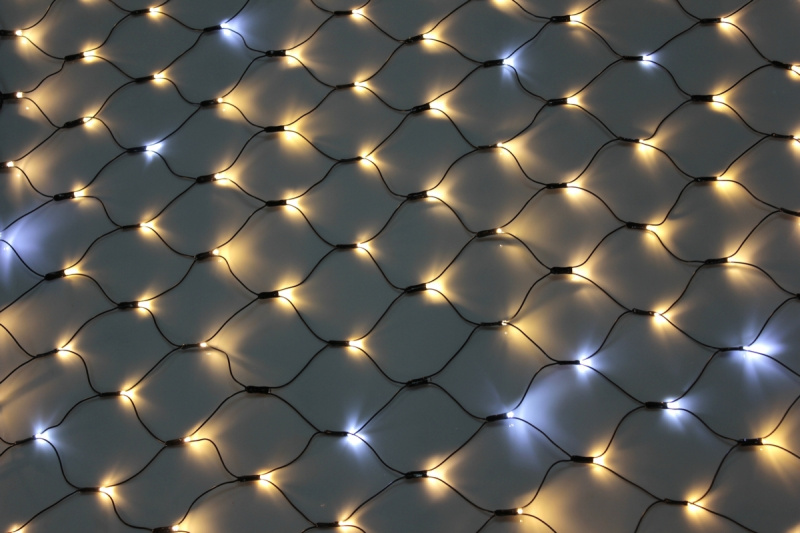 Гирлянда Сеть (светодиодная сетка, гирлянда-сетка) надежно защищена от попадания влаги, пыли, грязи внутрь корпуса. Декоративное украшение успешно переносит пониженную или высокую температуру, прямые солнечные лучи, поэтому допускается монтаж на улице.
