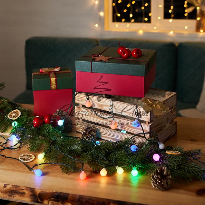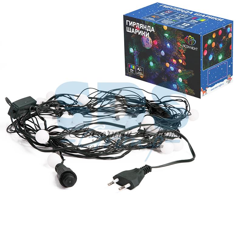 Гирлянда "Шарики" Ø18мм 5м, темно-зеленый ПВХ, 30 диодов, цвет RGB купить в интернет-магазине Сказочный свет