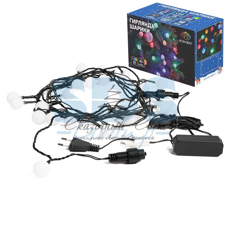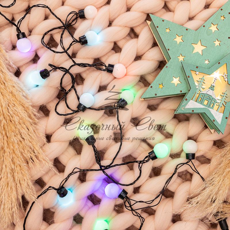 Гирлянда "Шарики" Ø25мм 5м, темно-зеленый ПВХ, 25 диодов, цвет RGB купить в интернет-магазине Сказочный свет