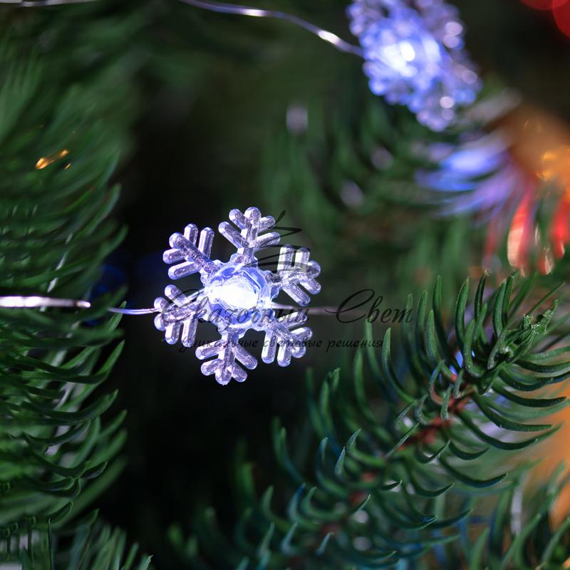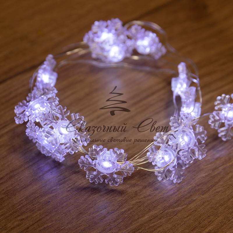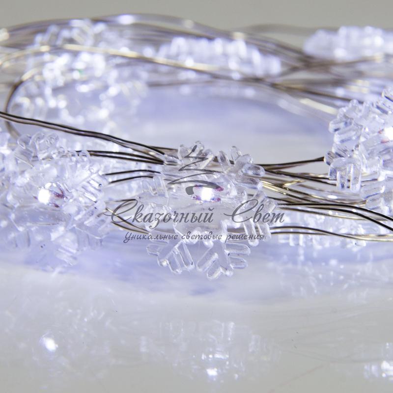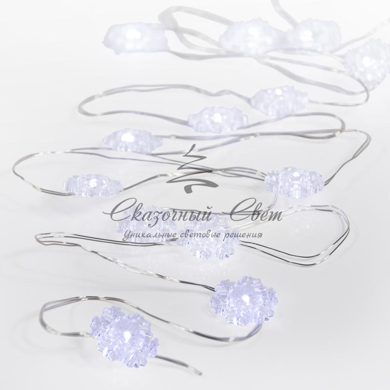 Гирлянда "Снежинки", 2м, 20 диодов, цвет белый купить в интернет-магазине Сказочный свет