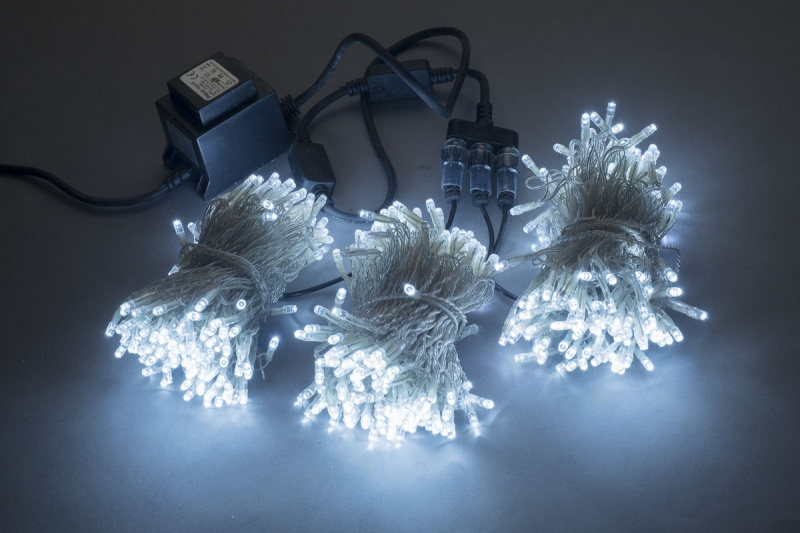 Уличные светодиодные гирлянды существуют в трех видах питания это 220В, 12В и 24В, гирлянды которые подключаются к сети в 220В, просты в использовании и обычно дешевле по стоимости, светодиоды в них соединены последовательно, в уличных длинных гирляндах идет параллельное соединение нескольких светодиодов. Важно знать, что уличные гирлянды должны иметь надежную изоляцию, что бы обеспечить защиту людей от удара электрического тока. Гирлянды, которые с питанием 12В и 24В представляют гораздо меньше опасности (при условии, что понижающий трансформатор в исправном состоянии и хорошо изолирован) для человека и подключаются к сети 220В через трансформатор понижения, такие трансформаторы при продаже обычно идут в комплекте с гирляндами. Дополнительное преимущество гирлянд это последовательно-параллельное соединение, такие светодиодные гирлянды можно резать отрезками и потом соединять параллельно. Это позволяет использовать такую гирлянду еще более гибко и подбирать её для украшения еще большего количества разнообразных объектов. Так же благодаря последовательно-параллельному соединению гирлянды при повреждении светодиода, вся гирлянда не выходит из строя, а погасает от 4 до 6 светодиодов, что не всегда сильно заметно на общем фоне и не требует замены всей цепи, что не скажешь о гирляндах с питанием напрямую от сети 220В.