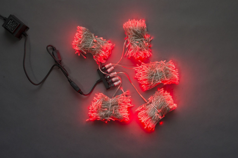 Гирлянда-спайдер для елки Flash 5х20м, 1000LED, прозрачный провод, красный/красный флэш купить в интернет-магазине Сказочный свет