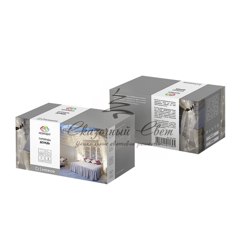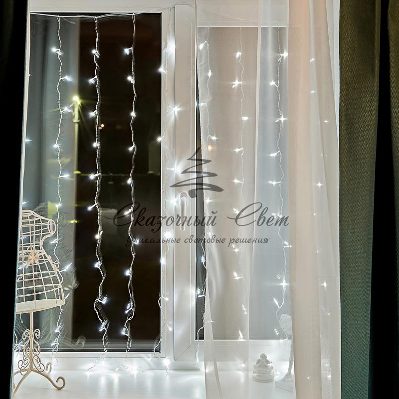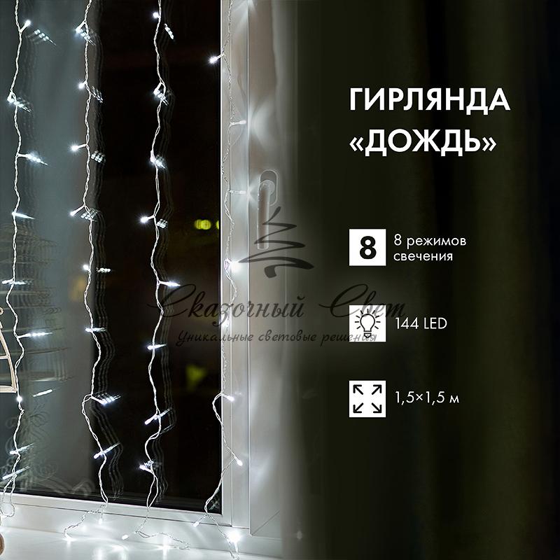 Гирлянда светодиодная «Дождь» 1.5х1.5 м 144 LED, прозрачный ПВХ, с контроллером, холодное белое свечение NEON-NIGHT купить в интернет-магазине Сказочный свет