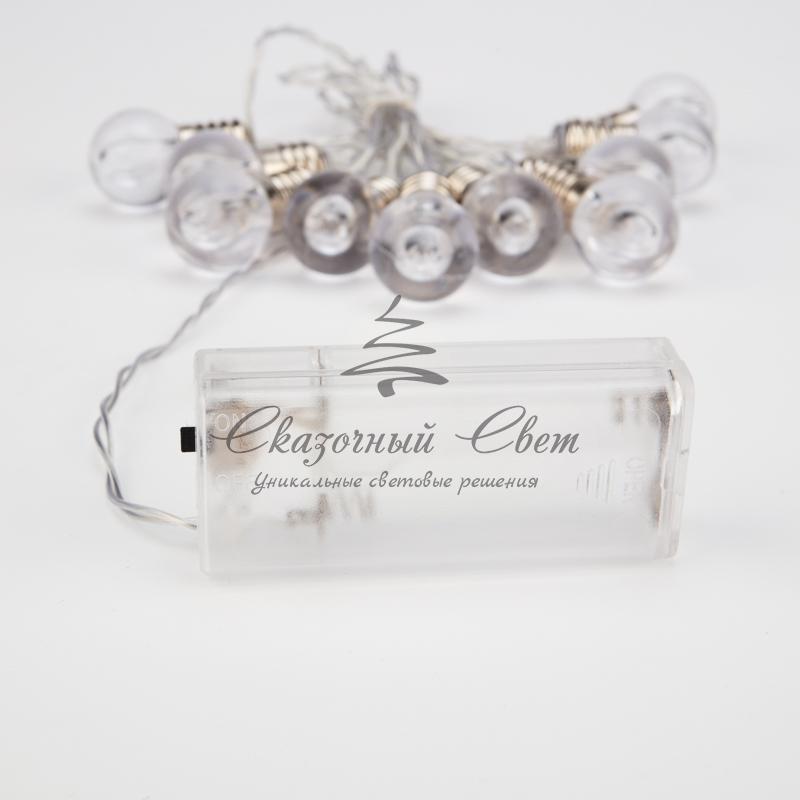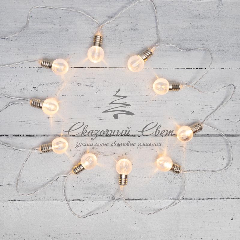 Гирлянда светодиодная «Лампочки» 10 LED, 1.5 м, прозрачный ПВХ, теплый белый цвет свечения, 2 х АА (батарейки не в комплекте) NEON-NIGHT купить в интернет-магазине Сказочный свет