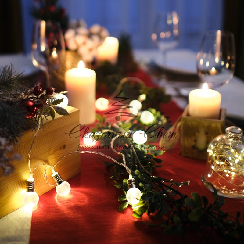 Светодиодная гирлянда «Лампочки» длиной 1,6 метра — прекрасный вариант для оформления интерьерных предметов, находящихся в отдалении от розетки. Изделие питается от 2 батареек АА и не нуждается в подключении к стандартной электросети. Такой тип питания гарантирует безопасность в использовании. 10 декоративных лампочек излучают теплый белый свет, озаряя пространство вокруг. Гирлянда с защитой IP20 предназначена для использования в сухих отапливаемых помещениях.