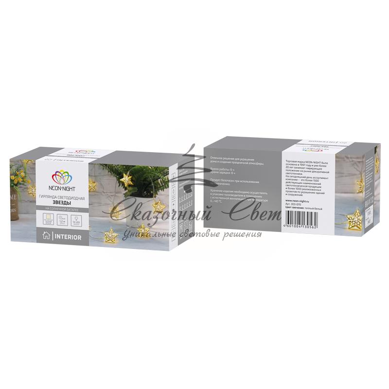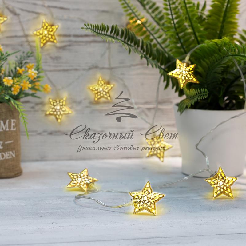 Гирлянда светодиодная на солнечной батарее "Звезды" 12 LED ТЕПЛЫЙ БЕЛЫЙ 1,2 метра купить в интернет-магазине Сказочный свет