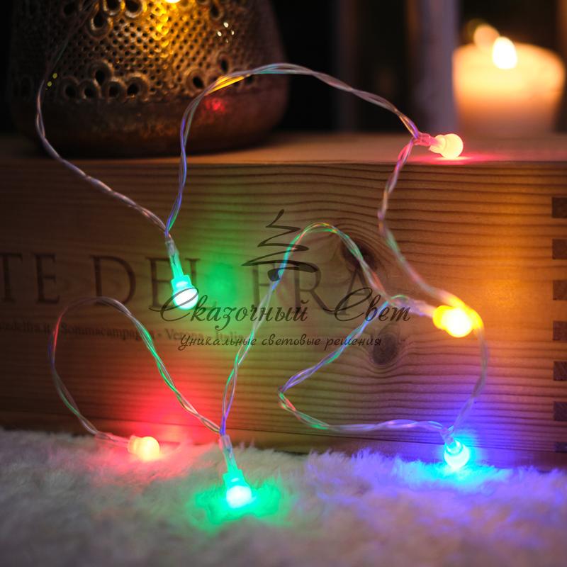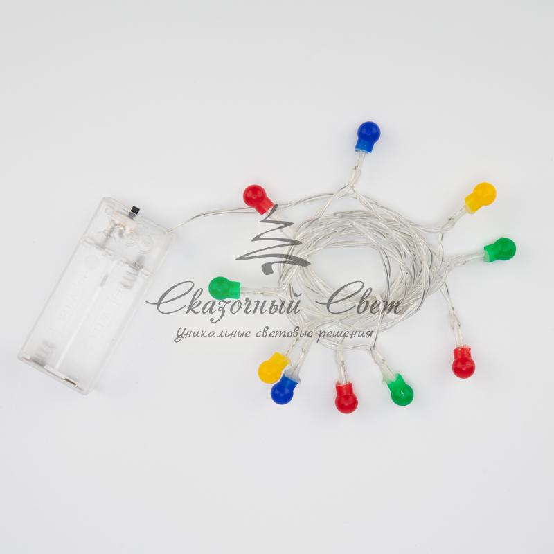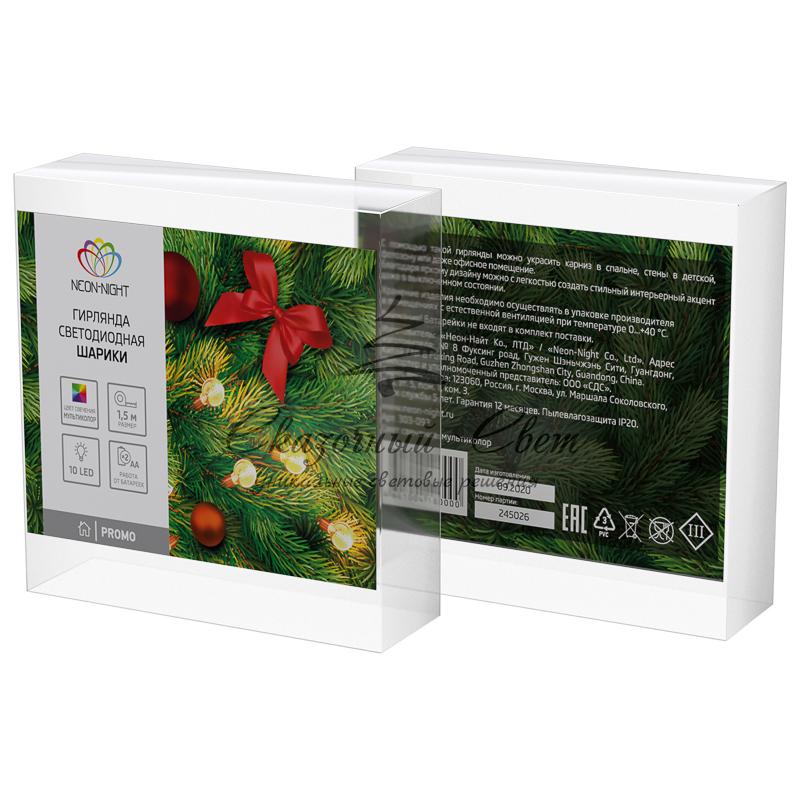 Гирлянда светодиодная «Шарики» 1.5 м, 10 LED, прозрачный ПВХ, цвет свечения мультиколор, 2 х АА (батарейки не в комплекте) NEON-NIGHT купить в интернет-магазине Сказочный свет