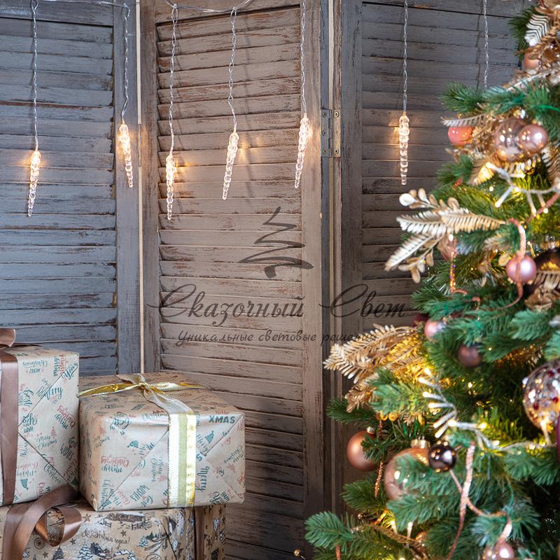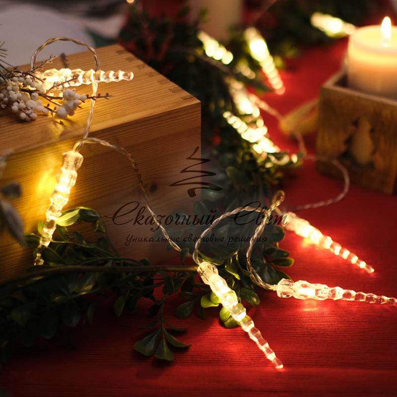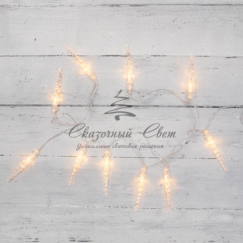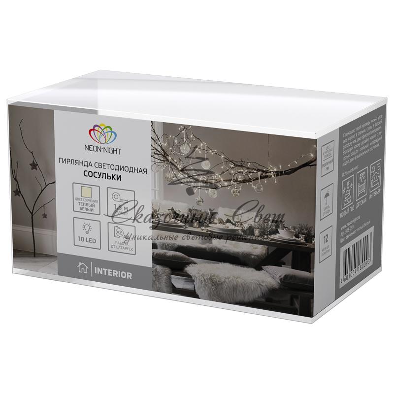 Гирлянда светодиодная «Сосульки» 1.5 м, 10 LED, прозрачный ПВХ, цвет свечения теплый белый, 2 х АА (батарейки не в комплекте) NEON-NIGHT купить в интернет-магазине Сказочный свет