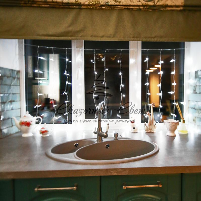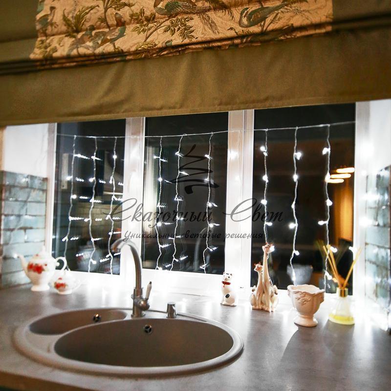 Гирлянда «Дождь» 1,5×1 м, выполнена в виде занавеса и прекрасно подходит для оформления окон в жилых и офисных помещениях. 96 светодиодов, излучающих белый свет, расположены по всей длине гибкого провода. Светодиоды практически не нагреваются во время работы, экономно расходуют энергию и ярко светят на протяжении всего срока службы. Отличительное преимущество интерьерных гирлянд: длина шнура питания 3 метра — этого достаточно, чтобы подключить изделие к розетке в любом удобном месте без использования удлинителей.
