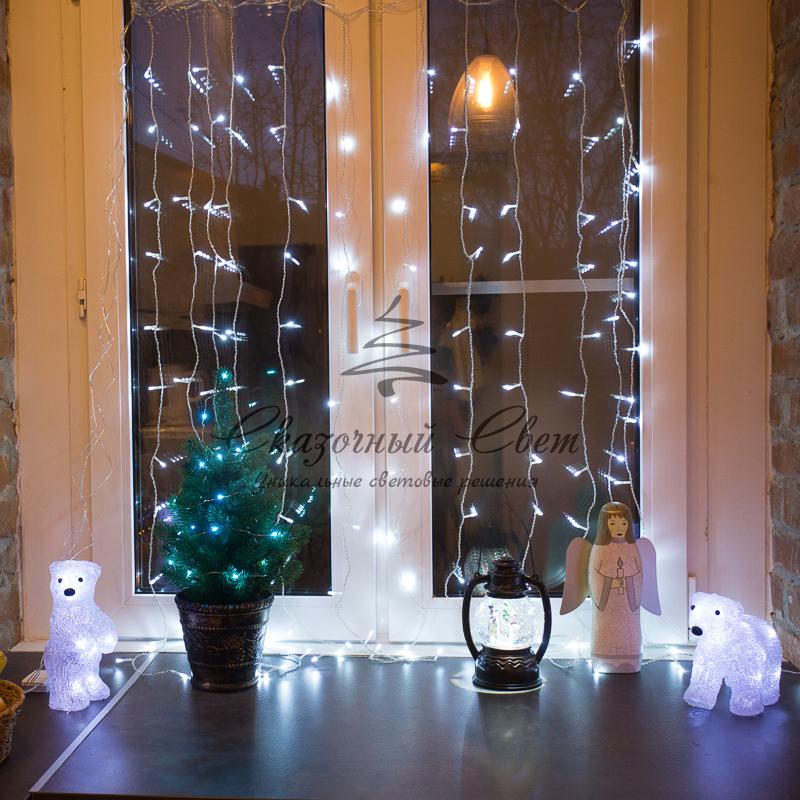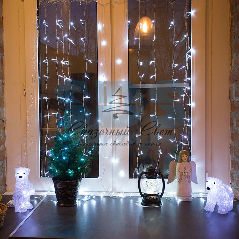 Гирлянда "Светодиодный Дождь" 1,5х1м, свечение с динамикой, прозрачный провод, 230 В, диоды БЕЛЫЕ купить в интернет-магазине Сказочный свет