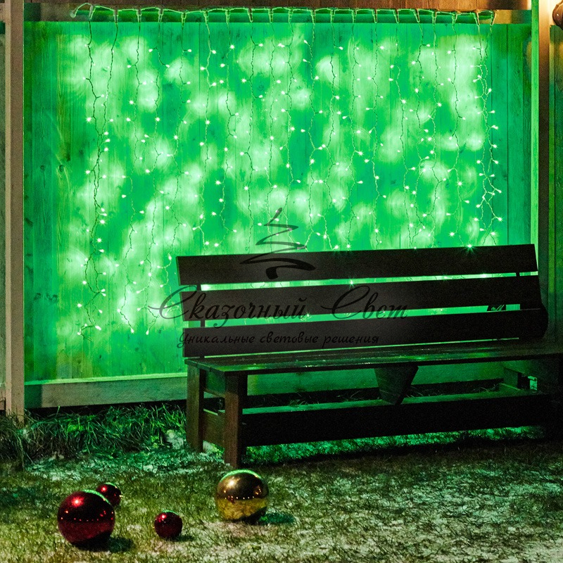 Гирлянда Светодиодный Дождь 2х1,5м, эффект мерцания, белый провод, 230 В, диоды ЗЕЛЁНЫЕ купить в интернет-магазине Сказочный свет