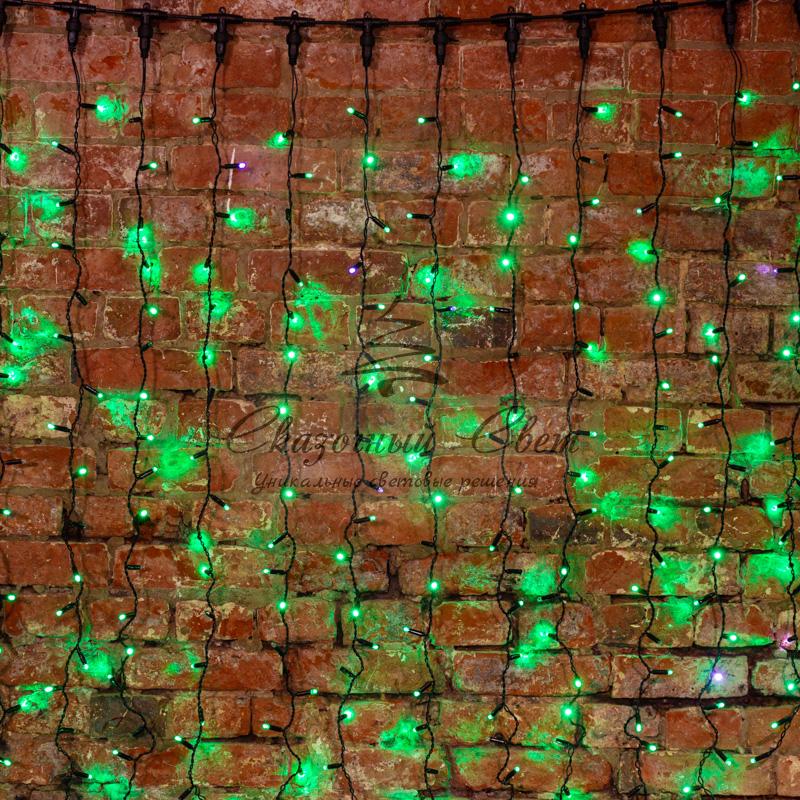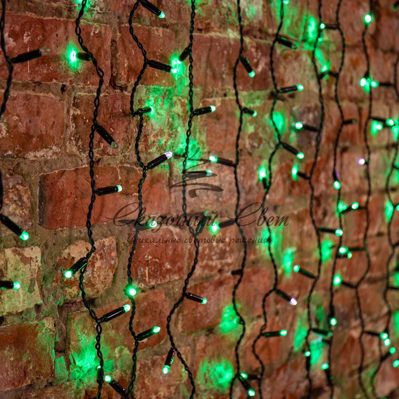 Гирлянда "Светодиодный Дождь" 2х1,5м, эффект мерцания, черный провод, 230 В, диоды ЗЕЛЁНЫЕ купить в интернет-магазине Сказочный свет