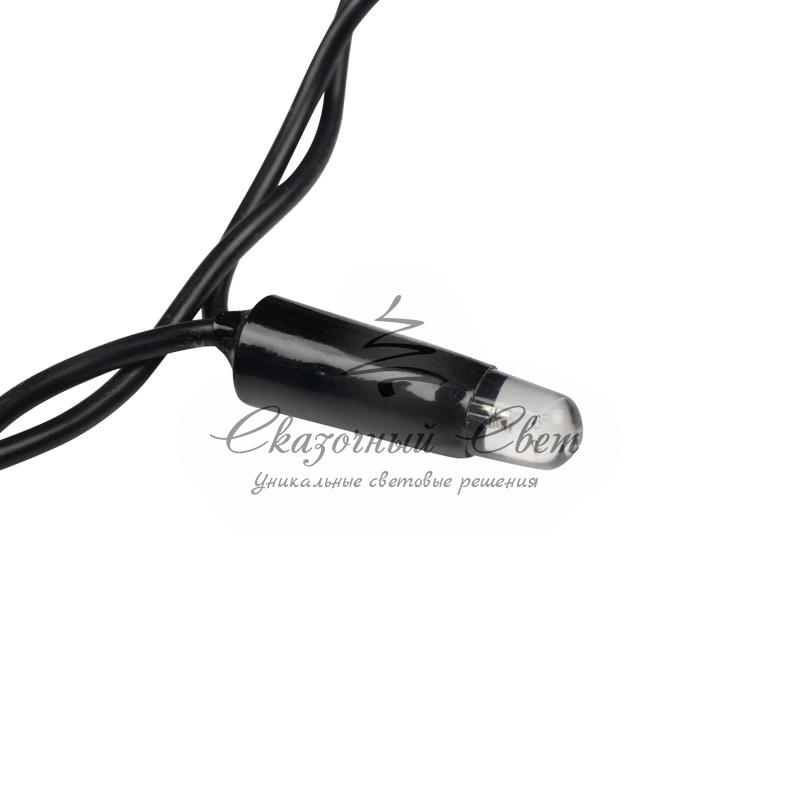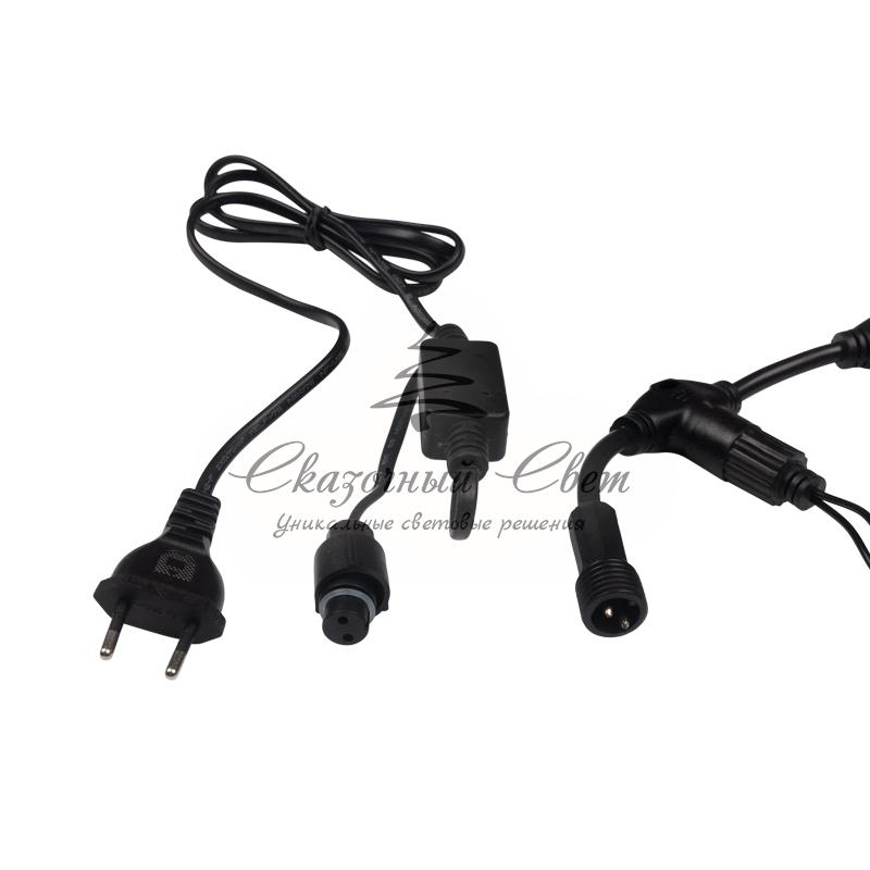 Гирлянда «Светодиодный Дождь» представляет собой гибкий горизонтальный шнур-шину (2м), к которому через определенные промежутки крепятся вертикальные нити (20 шт.) со светодиодными лампами, которые отличаются от «Бахромы» тем, что имеют одинаковую, достаточно значительную длину, часто превышающую протяженность шины. На концах каждой шины есть разъем и штепсель, которые предназначены для последовательного соединения нескольких световых дождей в большой занавес ПЛЕЙ-ЛАЙТ. Используя занавес, можно не только создавать красивые световые занавесы или оформлять различные плоскости, например, фасады домов, окна и т.д., но и украшать объемные объекты. Гирлянду, работающую в непрерывном свечении, называют фиксинг, а использующую режим светодинамики – чейзинг. Режим чейзинг имеет различные светодинамические эффекты. Данная гирлянда имеет эффект мерцания. Сегодня в гирляндах источником света служат светодиоды, которые пришли на смену применявшимся ранее лампам накаливания. С полупроводниковыми источниками гирлянда стала более надежной, потребляет меньше энергии, обрела более насыщенное сияние. Данная гирлянда имеет зеленый цвет свечения светодиодов.