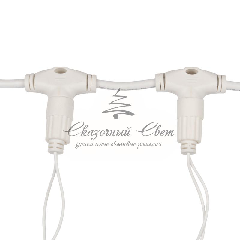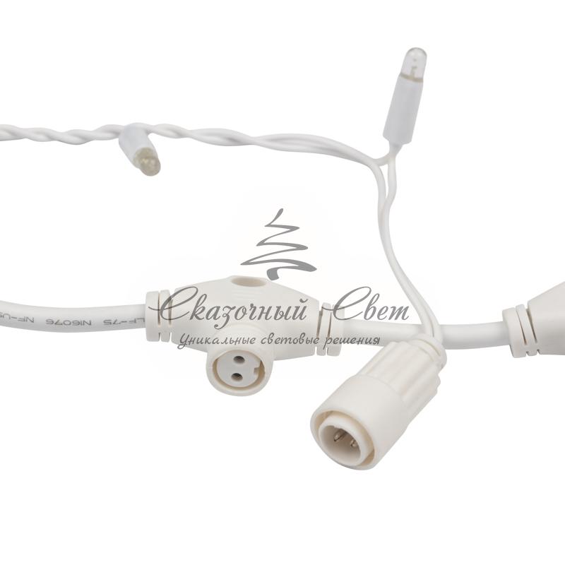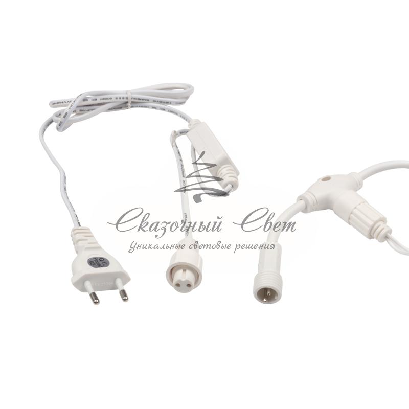 Гирлянда «Светодиодный Дождь» представляет собой гибкий горизонтальный шнур-шину (2м), к которому через определенные промежутки крепятся вертикальные нити (20 шт.) со светодиодными лампами, которые отличаются от «Бахромы» тем, что имеют одинаковую, достаточно значительную длину, часто превышающую протяженность шины. На концах каждой шины есть разъем и штепсель, которые предназначены для последовательного соединения нескольких световых дождей в большой занавес ПЛЕЙ-ЛАЙТ. Используя занавес, можно не только создавать красивые световые занавесы или оформлять различные плоскости, например, фасады домов, окна и т.д., но и украшать объемные объекты. Гирлянду, работающую в непрерывном свечении, называют фиксинг, а использующую режим светодинамики – чейзинг. Светодинамические эффекты становятся доступными только при подключении гирлянды к сети через специальный контроллер. Сегодня в гирляндах источником света служат светодиоды, которые пришли на смену применявшимся ранее лампам накаливания. С полупроводниковыми источниками гирлянда стала более надежной, потребляет меньше энергии, обрела более насыщенное сияние. Данная гирлянда имеет зеленый цвет свечения светодиодов.