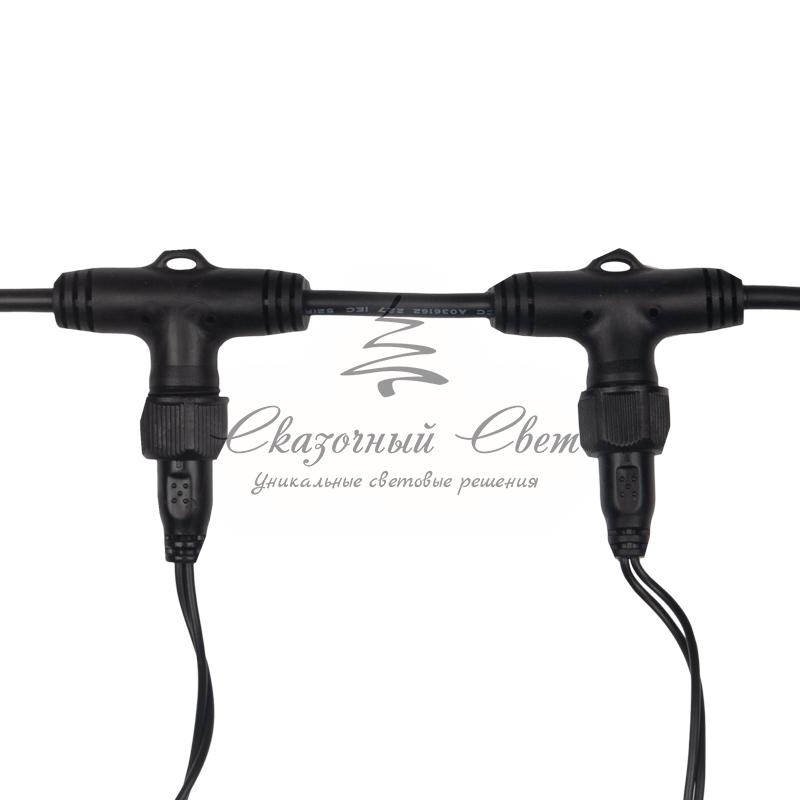 Гирлянда «Светодиодный Дождь» представляет собой гибкий горизонтальный шнур-шину (2м), к которому через определенные промежутки крепятся вертикальные нити (20 шт.) со светодиодными лампами, которые отличаются от «Бахромы» тем, что имеют одинаковую, достаточно значительную длину, часто превышающую протяженность шины. На концах каждой шины есть разъем и штепсель, которые предназначены для последовательного соединения нескольких световых дождей в большой занавес ПЛЕЙ-ЛАЙТ. Используя занавес, можно не только создавать красивые световые занавесы или оформлять различные плоскости, например, фасады домов, окна и т.д., но и украшать объемные объекты. Гирлянду, работающую в непрерывном свечении, называют фиксинг, а использующую режим светодинамики – чейзинг. Светодинамические эффекты становятся доступными только при подключении гирлянды к сети через специальный контроллер. Сегодня в гирляндах источником света служат светодиоды, которые пришли на смену применявшимся ранее лампам накаливания. С полупроводниковыми источниками гирлянда стала более надежной, потребляет меньше энергии, обрела более насыщенное сияние. Данная гирлянда имеет белый цвет свечения светодиодов.