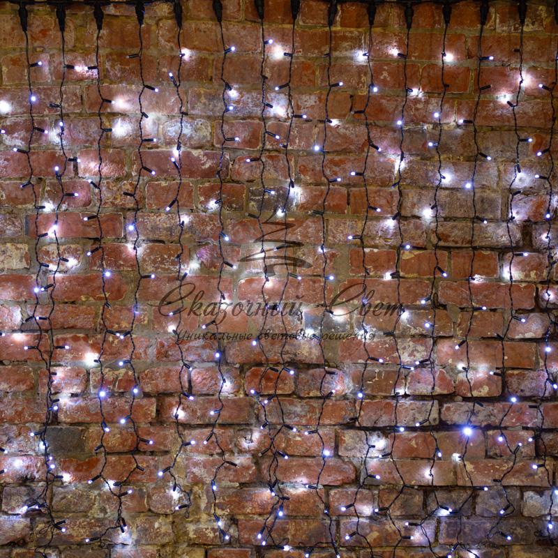Гирлянда "Светодиодный Дождь" 2х1,5м, постоянное свечение, черный провод, 230 В, диоды БЕЛЫЕ купить в интернет-магазине Сказочный свет