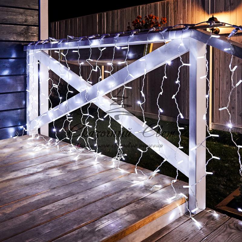 Гирлянда "Светодиодный Дождь" 2х1,5м, постоянное свечение, прозрачный провод, 230 В, диоды БЕЛЫЕ купить в интернет-магазине Сказочный свет