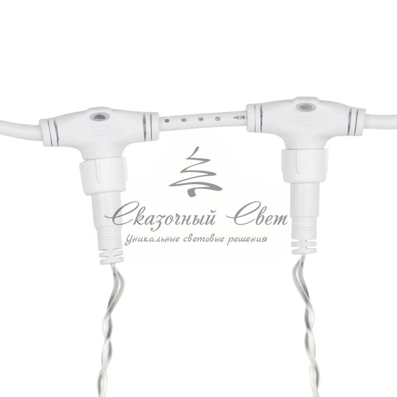 Гирлянда «Светодиодный Дождь» представляет собой гибкий горизонтальный шнур-шину (2м), к которому через определенные промежутки крепятся вертикальные нити (16 шт.) со светодиодными лампами, которые отличаются от «Бахромы» тем, что имеют одинаковую, достаточно значительную длину, часто превышающую протяженность шины. На концах каждой шины есть разъем и штепсель, которые предназначены для последовательного соединения нескольких световых дождей в большой занавес ПЛЕЙ-ЛАЙТ. Используя занавес, можно не только создавать красивые световые занавесы или оформлять различные плоскости, например, фасады домов, окна и т.д., но и украшать объемные объекты. Гирлянду, работающую в непрерывном свечении, называют фиксинг, а использующую режим светодинамики – чейзинг. Светодинамические эффекты становятся доступными только при подключении гирлянды к сети через специальный контроллер. Данная гирлянда имеет эффект свечения с переменой цвета. Сегодня в гирляндах источником света служат светодиоды, которые пришли на смену применявшимся ранее лампам накаливания. С полупроводниковыми источниками гирлянда стала более надежной, потребляет меньше энергии, обрела более насыщенное сияние. Данная гирлянда имеет цвет свечения светодиодов мультиколор.