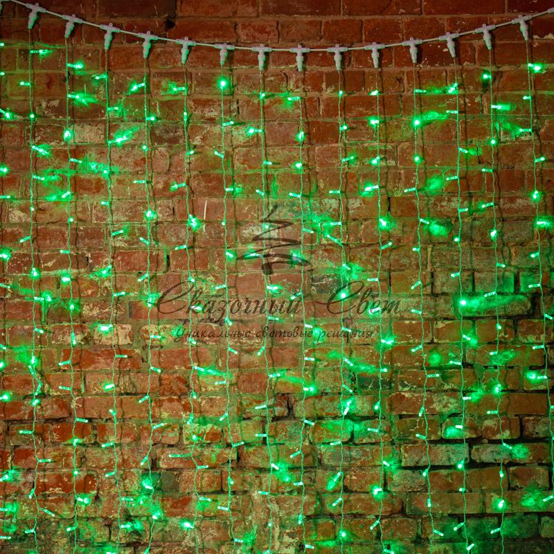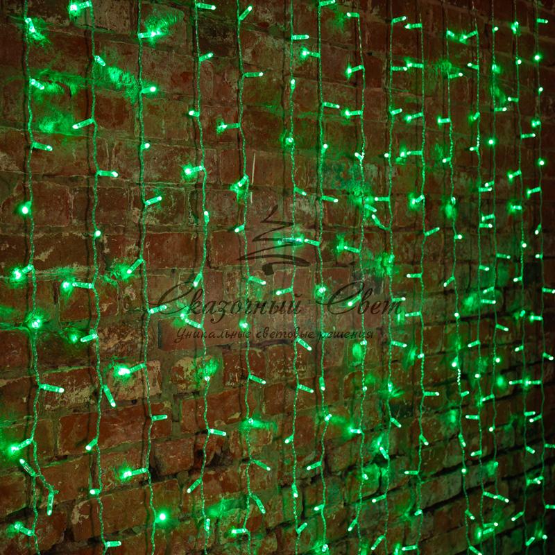 Гирлянда "Светодиодный Дождь" 2х1,5м, постоянное свечение, прозрачный провод, 230 В, диоды ЗЕЛЁНЫЕ купить в интернет-магазине Сказочный свет
