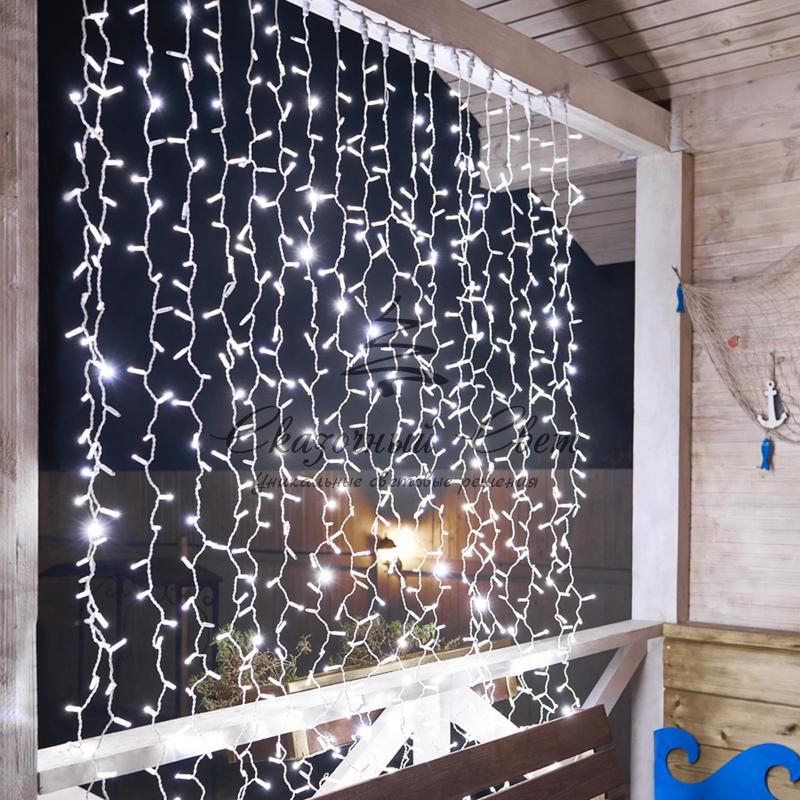 Гирлянда "Светодиодный Дождь" 2х3м, эффект мерцания, белый провод, 230 В, диоды БЕЛЫЕ купить в интернет-магазине Сказочный свет