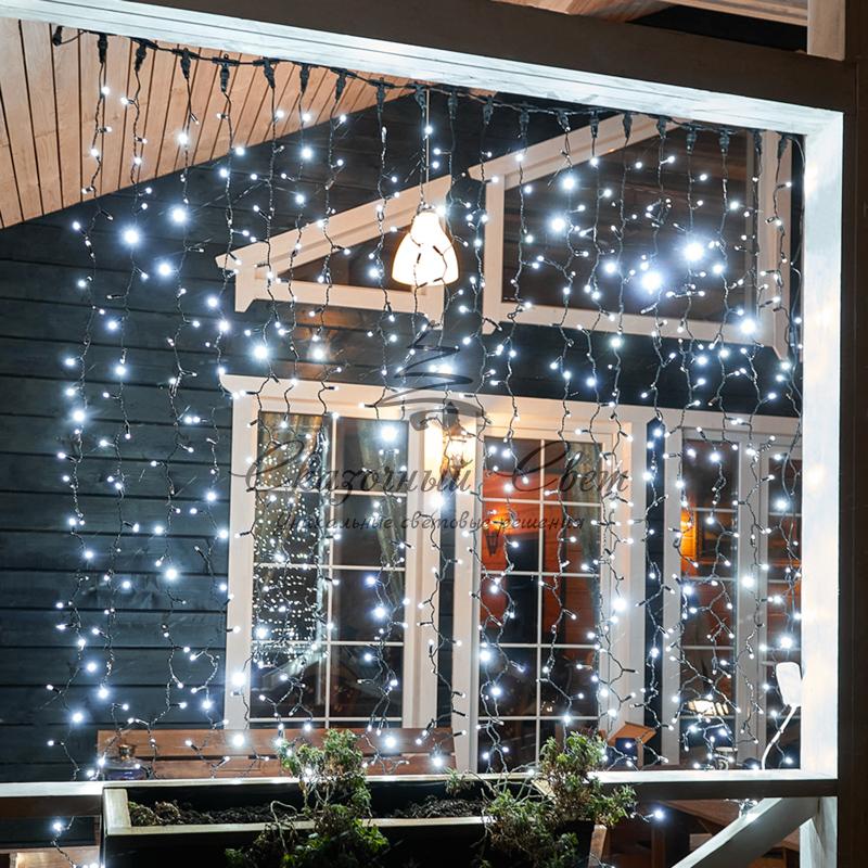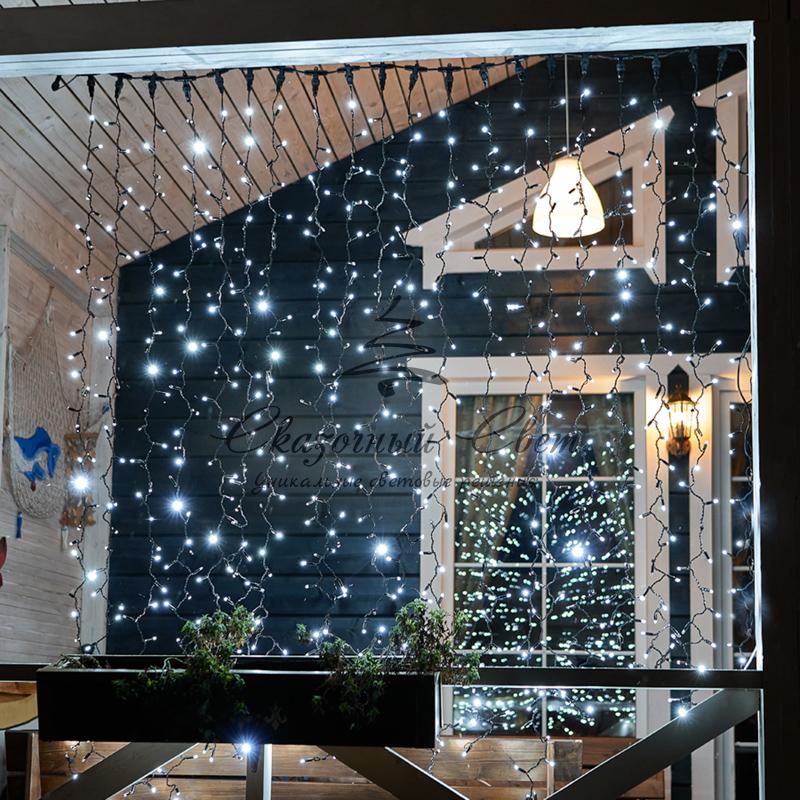 Гирлянда "Светодиодный Дождь" 2х3м, эффект мерцания, черный провод, 230 В, диоды БЕЛЫЕ купить в интернет-магазине Сказочный свет