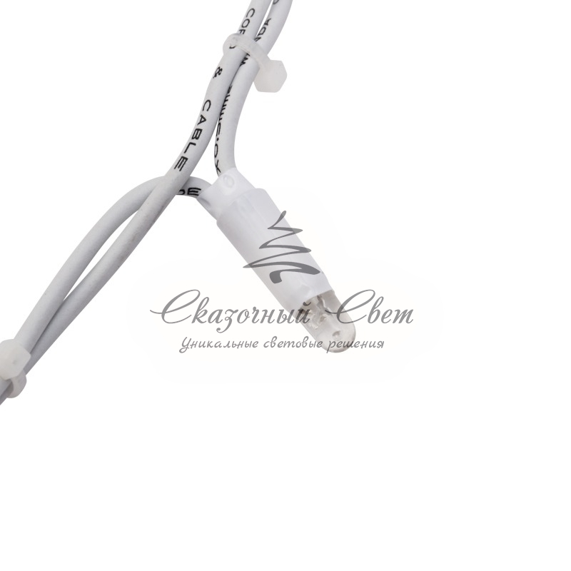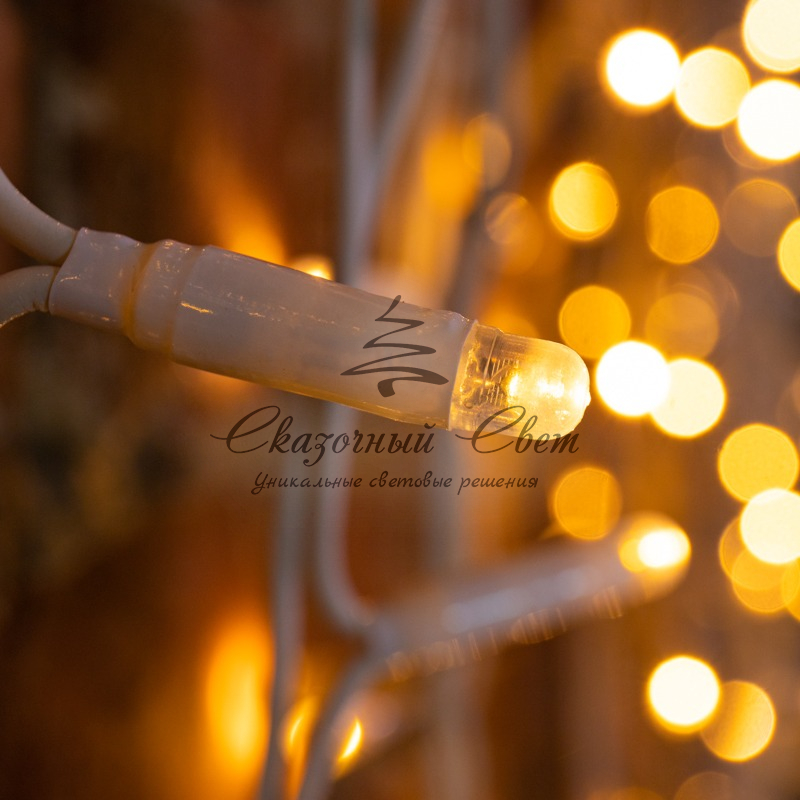 Данная гирлянда имеет теплый белый цвет свечения светодиодов.