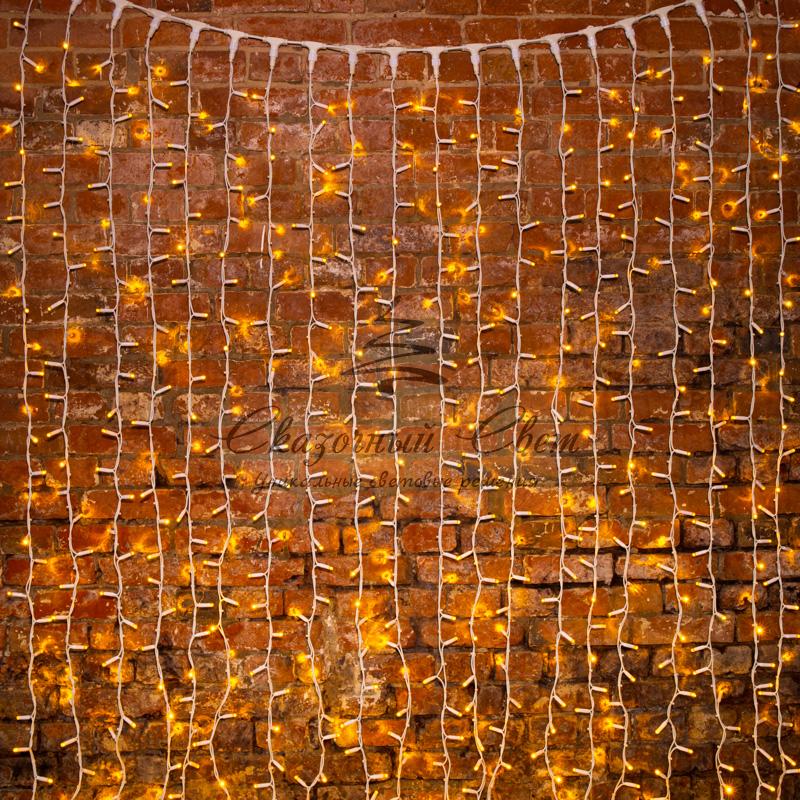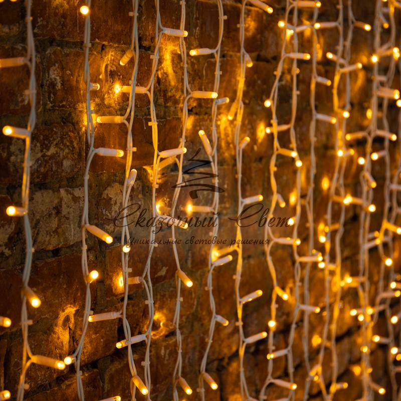 Гирлянда "Светодиодный Дождь" 2х3м, постоянное свечение, белый провод "КАУЧУК", 230 В, диоды ЖЁЛТЫЕ купить в интернет-магазине Сказочный свет