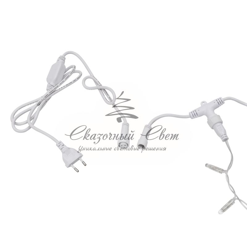 Гирлянда «Светодиодный Дождь» представляет собой гибкий горизонтальный шнур-шину (2м), к которому через определенные промежутки крепятся вертикальные нити (16 шт.) со светодиодными лампами, которые отличаются от «Бахромы» тем, что имеют одинаковую, достаточно значительную длину, часто превышающую протяженность шины. На концах каждой шины есть разъем и штепсель, которые предназначены для последовательного соединения нескольких световых дождей в большой занавес ПЛЕЙ-ЛАЙТ. Используя занавес, можно не только создавать красивые световые занавесы или оформлять различные плоскости, например, фасады домов, окна и т.д., но и украшать объемные объекты. Гирлянду, работающую в непрерывном свечении, называют фиксинг, а использующую режим светодинамики – чейзинг. Светодинамические эффекты становятся доступными только при подключении гирлянды к сети через специальный контроллер. Данная гирлянда имеет эффект свечения с переменой цвета. Сегодня в гирляндах источником света служат светодиоды, которые пришли на смену применявшимся ранее лампам накаливания. С полупроводниковыми источниками гирлянда стала более надежной, потребляет меньше энергии, обрела более насыщенное сияние. Данная гирлянда имеет цвет свечения светодиодов мультиколор.