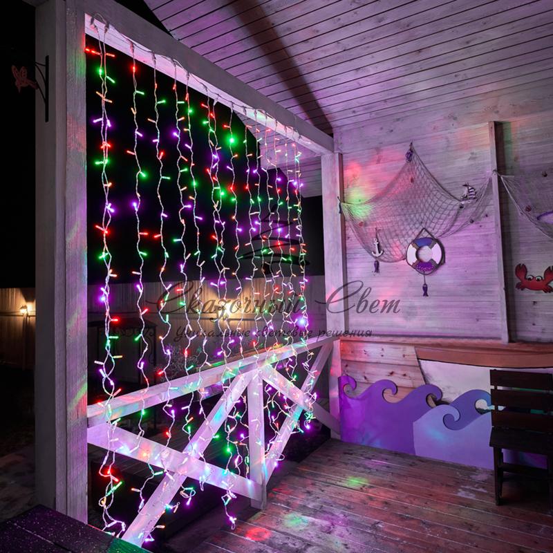 Гирлянда "Светодиодный Дождь" 2х3м, постоянное свечение, прозрачный провод, 230 В, диоды МУЛЬТИКОЛОР купить в интернет-магазине Сказочный свет