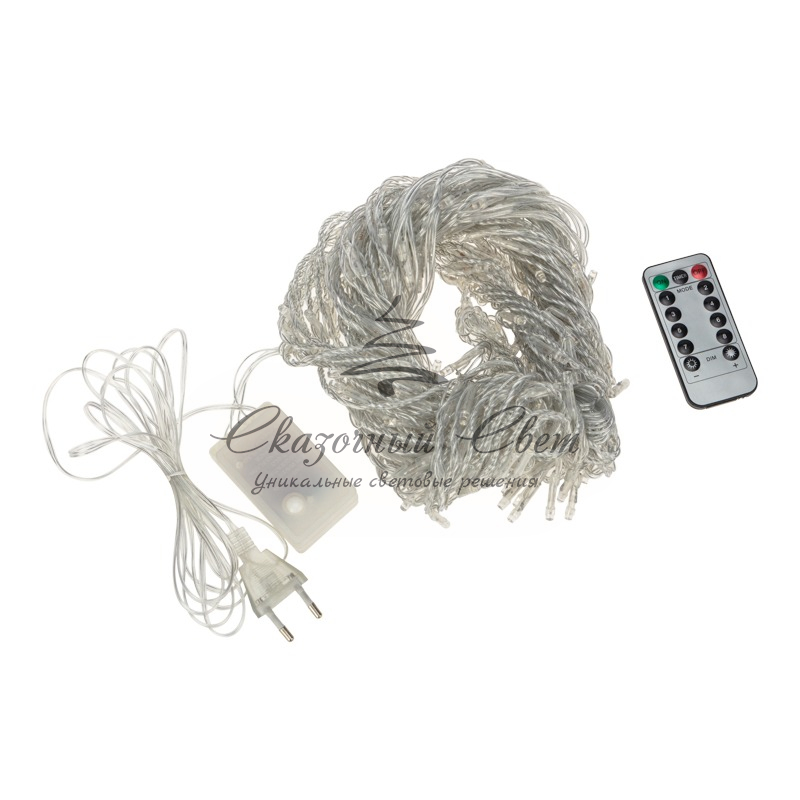 Данная гирлянда имеет белый цвет свечения светодиодов, контроллер и трансформатор в комплекте.