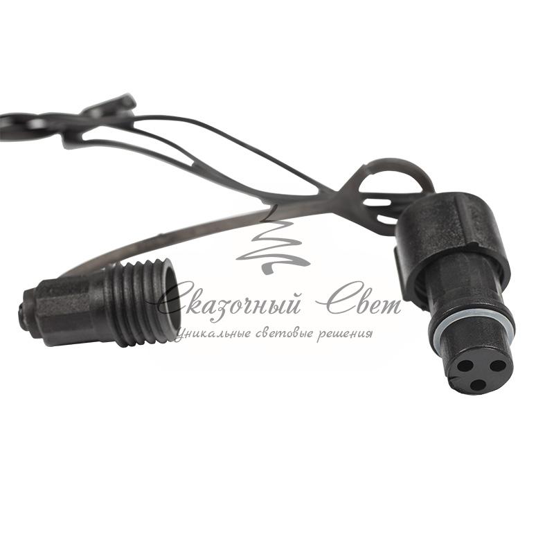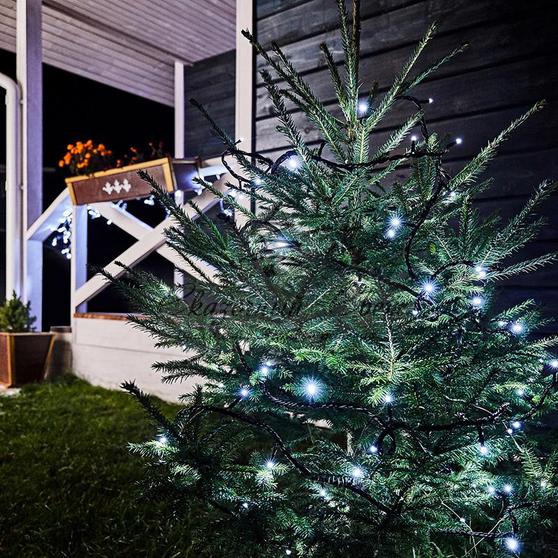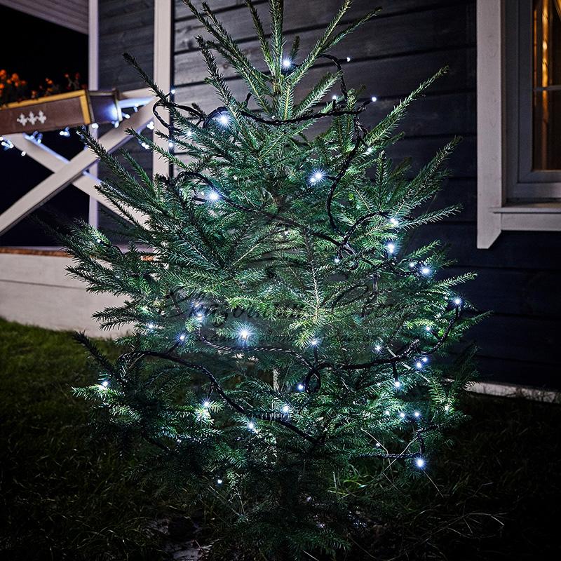 Гирлянду «Твинкл лайт» представляет собой общий провод с последовательно расположенными коротенькими отводами, направленными в разные стороны. На концах этих «отростков» расположены яркие светодиоды. Для создания праздничной светодинамики в общий провод встроен многопрограммный контроллер, который позволяет управлять 8 режимами свечения. Гирлянду «Твинкл лайт» создали в расчете на использование в качестве елочного украшения, в ее семейство входят самые разные гирлянды. Они различаются длиной, цветом и количеством светодиодов. Уличные гирлянды «Твинкл лайт» выпускаются длиной от 6 до 20 метров. Они прекрасно защищены от влаги, что делает их очень практичными. Светодиодные гирлянды имеют бесспорное преимущество перед ламповыми. Ресурс светодиодов составляет 100 000 ч. Благодаря малому энергопотреблению, рекордному ресурсу, высокой яркости, разнообразию и насыщенности цветов свечения они стали весьма привлекательным для потребителей. «Твинкл лайт» используют в качестве елочной гирлянды для украшения как уличных, так и домашних елей. Также гирлянда широко применяется для оформления различных витрин, окон, колонн, элементов интерьера и разнообразных экспозиций. Данная гирлянда имеет длину 10 м, белый цвет свечения светодиодов.