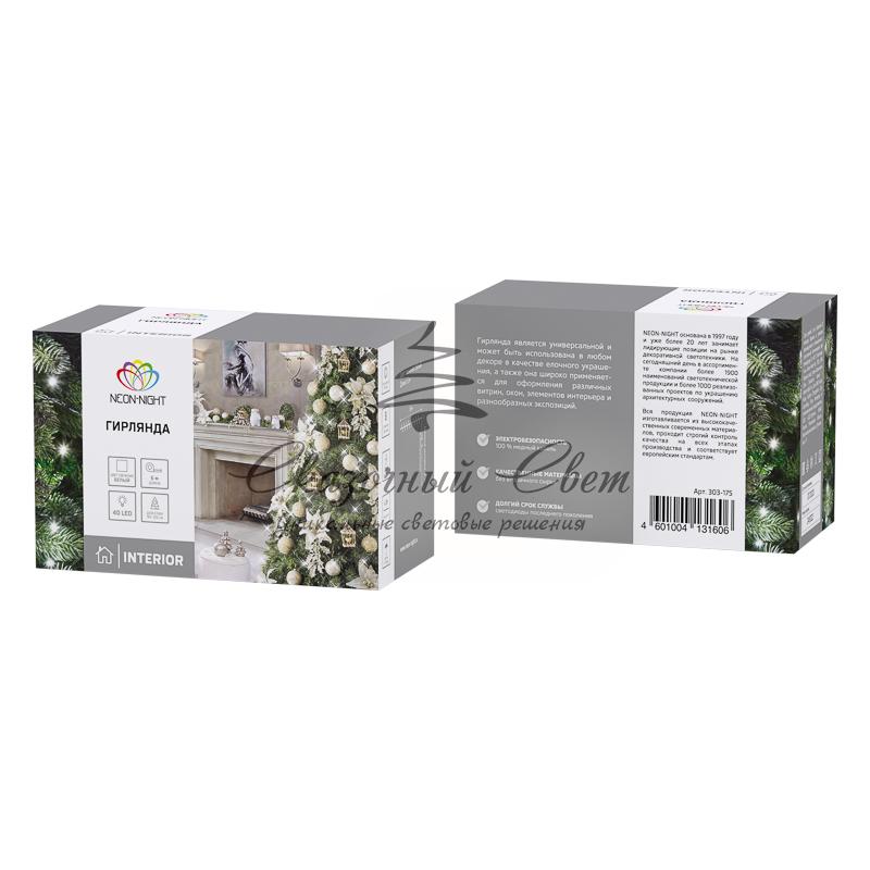 Гирлянда «Твинкл-Лайт» 10 м, прозрачный ПВХ, 80 LED, белое свечение NEON-NIGHT купить в интернет-магазине Сказочный свет