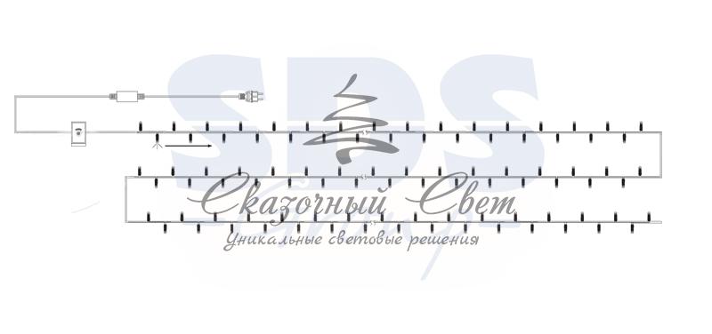 Гирлянду «Твинкл лайт» представляет собой общий провод с последовательно расположенными коротенькими отводами, направленными в разные стороны. На концах этих «отростков» расположены яркие светодиоды. Для создания праздничной светодинамики в общий провод встроен многопрограммный контроллер, который позволяет управлять 8 режимами свечения. Гирлянду «Твинкл лайт» создали в расчете на использование в качестве елочного украшения, в ее семейство входят самые разные гирлянды. Они различаются длиной, цветом и количеством светодиодов. Уличные гирлянды «Твинкл лайт» выпускаются длиной от 6 до 20 метров. Они прекрасно защищены от влаги, что делает их очень практичными. Светодиодные гирлянды имеют бесспорное преимущество перед ламповыми. Ресурс светодиодов составляет 100 000 ч. Благодаря малому энергопотреблению, рекордному ресурсу, высокой яркости, разнообразию и насыщенности цветов свечения они стали весьма привлекательным для потребителей. «Твинкл лайт» используют в качестве елочной гирлянды для украшения как уличных, так и домашних елей. Также гирлянда широко применяется для оформления различных витрин, окон, колонн, элементов интерьера и разнообразных экспозиций. Данная гирлянда имеет длину 20 м, цвет свечения светодиодов мультиколор.