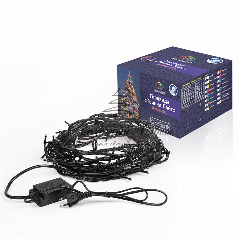 Гирлянда "Твинкл Лайт" 20 м, черный ПВХ, 200 диодов, цвет мультиколор купить в интернет-магазине Сказочный свет