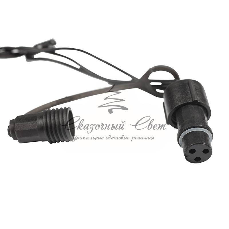 Гирлянду «Твинкл лайт» представляет собой общий провод с последовательно расположенными коротенькими отводами, направленными в разные стороны. На концах этих «отростков» расположены яркие светодиоды. Для создания праздничной светодинамики в общий провод встроен многопрограммный контроллер, который позволяет управлять 8 режимами свечения. Гирлянду «Твинкл лайт» создали в расчете на использование в качестве елочного украшения, в ее семейство входят самые разные гирлянды. Они различаются длиной, цветом и количеством светодиодов. Уличные гирлянды «Твинкл лайт» выпускаются длиной от 6 до 20 метров. Они прекрасно защищены от влаги, что делает их очень практичными. Светодиодные гирлянды имеют бесспорное преимущество перед ламповыми. Ресурс светодиодов составляет 100 000 ч. Благодаря малому энергопотреблению, рекордному ресурсу, высокой яркости, разнообразию и насыщенности цветов свечения они стали весьма привлекательным для потребителей. «Твинкл лайт» используют в качестве елочной гирлянды для украшения как уличных, так и домашних елей. Также гирлянда широко применяется для оформления различных витрин, окон, колонн, элементов интерьера и разнообразных экспозиций. Данная гирлянда имеет длину 20 м, цвет свечения светодиодов мультиколор.