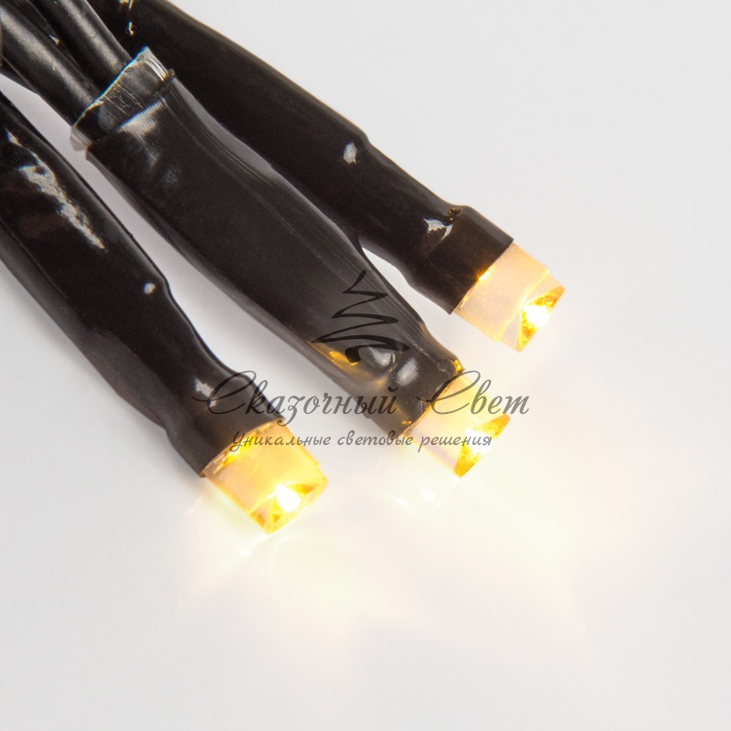 Данная гирлянда имеет длину 20 м, теплый белый цвет свечения светодиодов.