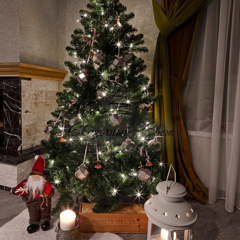 Гирлянда «Твинкл» длиной 20 метров — это оптимальный вариант, если нужно украсить высокую новогоднюю ель. Гибкий провод из темно-зеленого ПВХ не выделяется на фоне кроны аналогичного цвета и представляет вниманию только россыпь сверкающих огней, обрамляющих пушистые ветки. 160 диодов излучают приятный желтый свет, экономно потребляют энергию и не нагреваются. Восемь светодинамических режимов переключаются одним нажатием на кнопку контроллера. Устройство управления позволяет выбрать собственный сценарий свечения. Для подключения к сети предусмотрен кабель длиной 3 метра.
