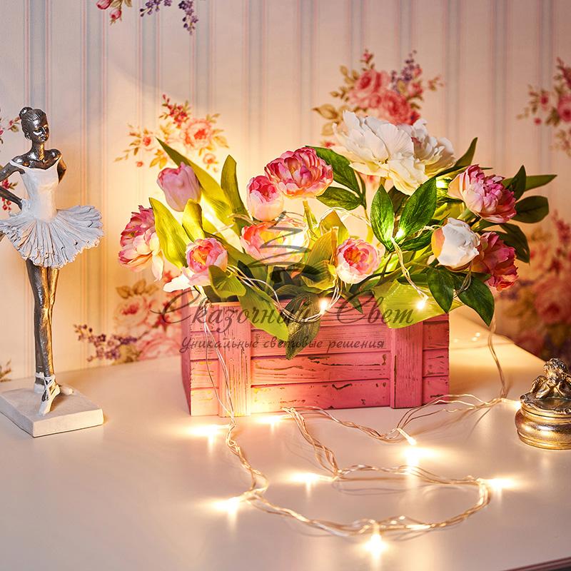 Гирлянда "Твинкл Лайт" 4 м, прозрачный ПВХ, 25 LED, цвет ТЕПЛЫЙ БЕЛЫЙ купить в интернет-магазине Сказочный свет