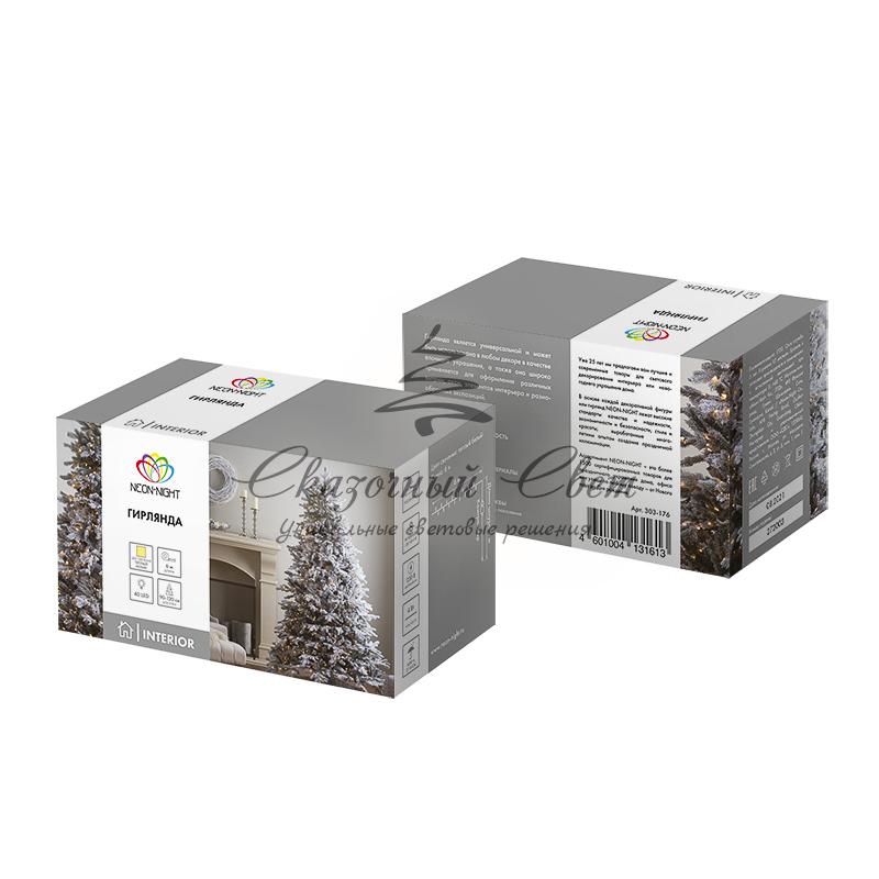 Гирлянда "Твинкл Лайт" 6 м, прозрачный ПВХ, 40 LED, цвет ТЕПЛЫЙ БЕЛЫЙ купить в интернет-магазине Сказочный свет