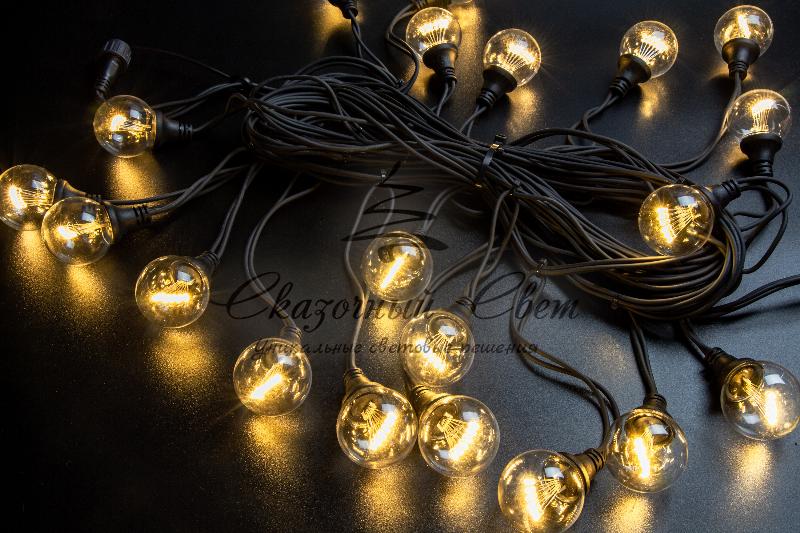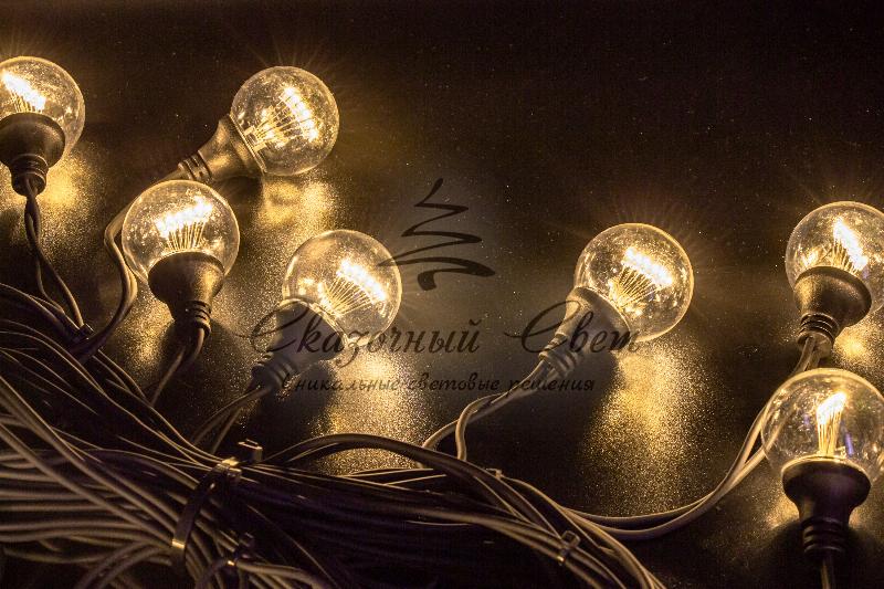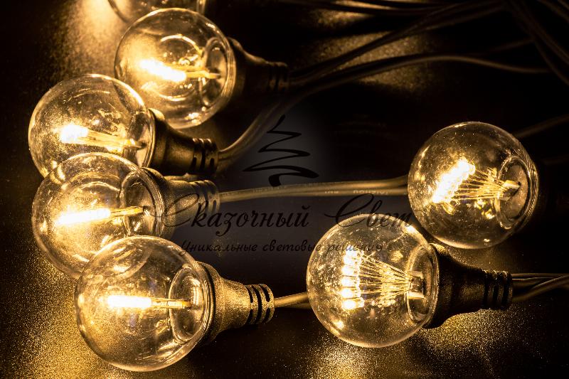 Гирлянда Винтаж, 220В, черная резина, теплый белый купить в интернет-магазине Сказочный свет