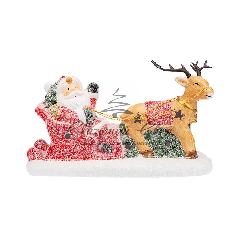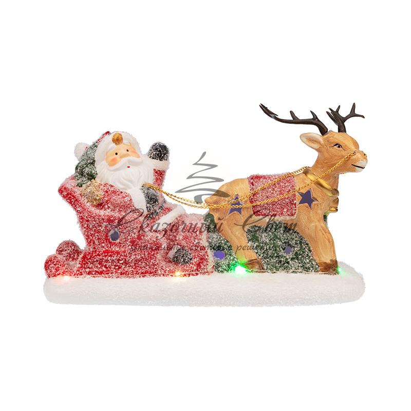 Керамическая фигурка «Дед Мороз в санях» 30.5х12.2х17.2 см купить в интернет-магазине Сказочный свет