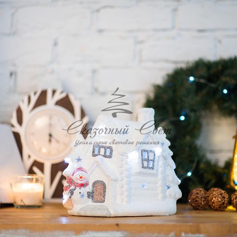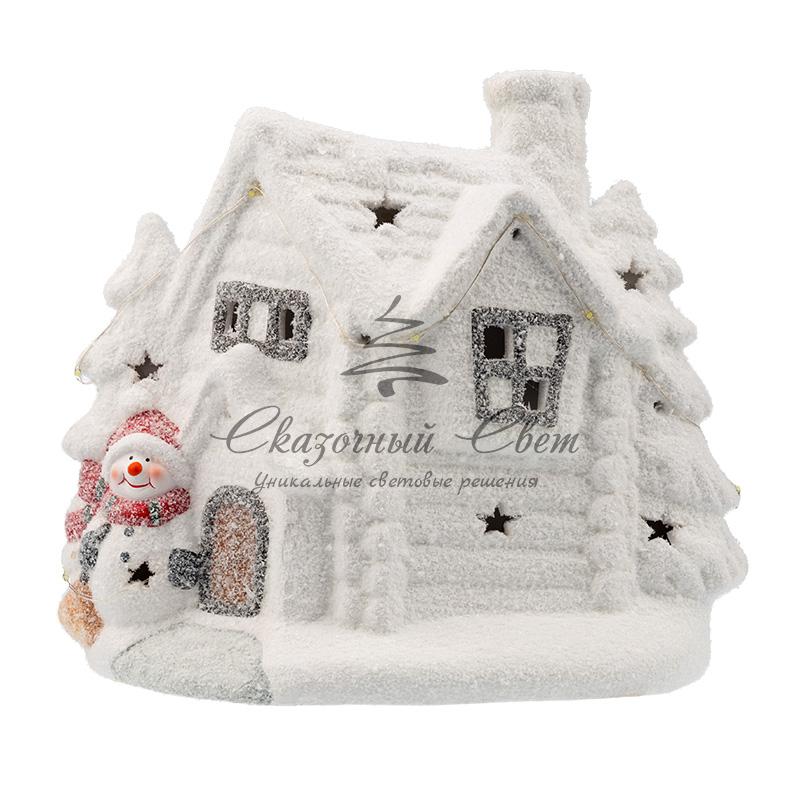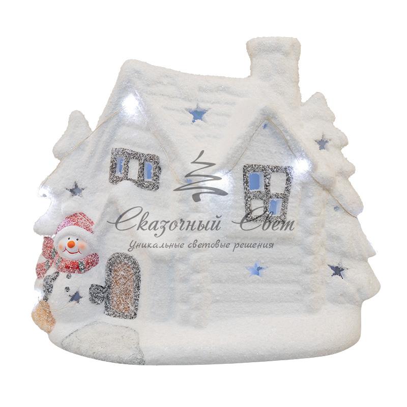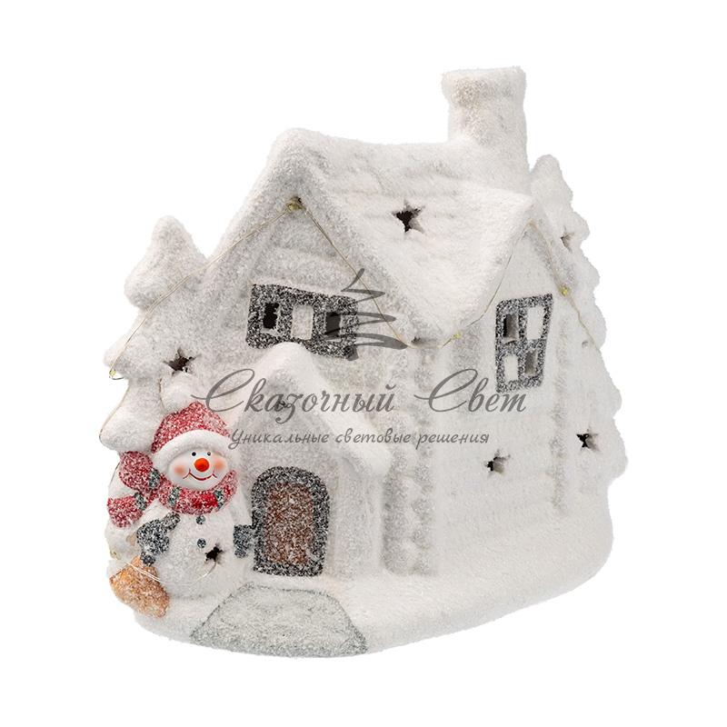 Керамическая фигурка «Домик со снеговиком» 26.2х9.5х23.3 см купить в интернет-магазине Сказочный свет