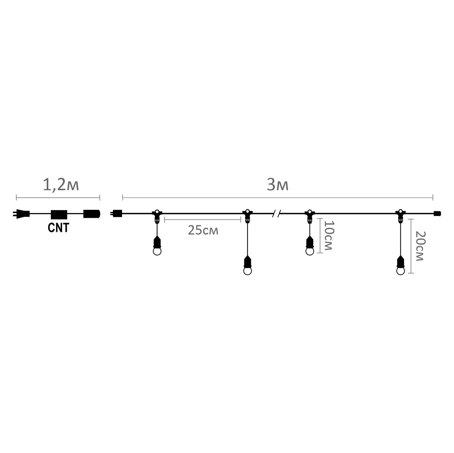 Комплект гирлянд для елки Unibelt Cafe 3 метра, шаг 25 см, белый провод купить в интернет-магазине Сказочный свет