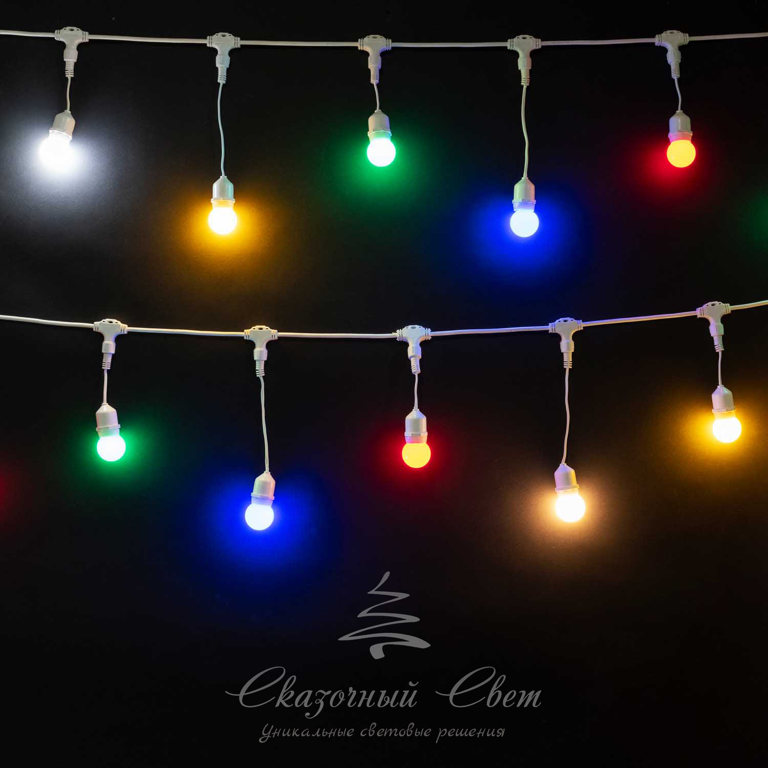 Комплект гирлянд Unibelt Cafe 10 метров, шаг 50 см, белый провод, светильник, уличный купить в интернет-магазине Сказочный свет