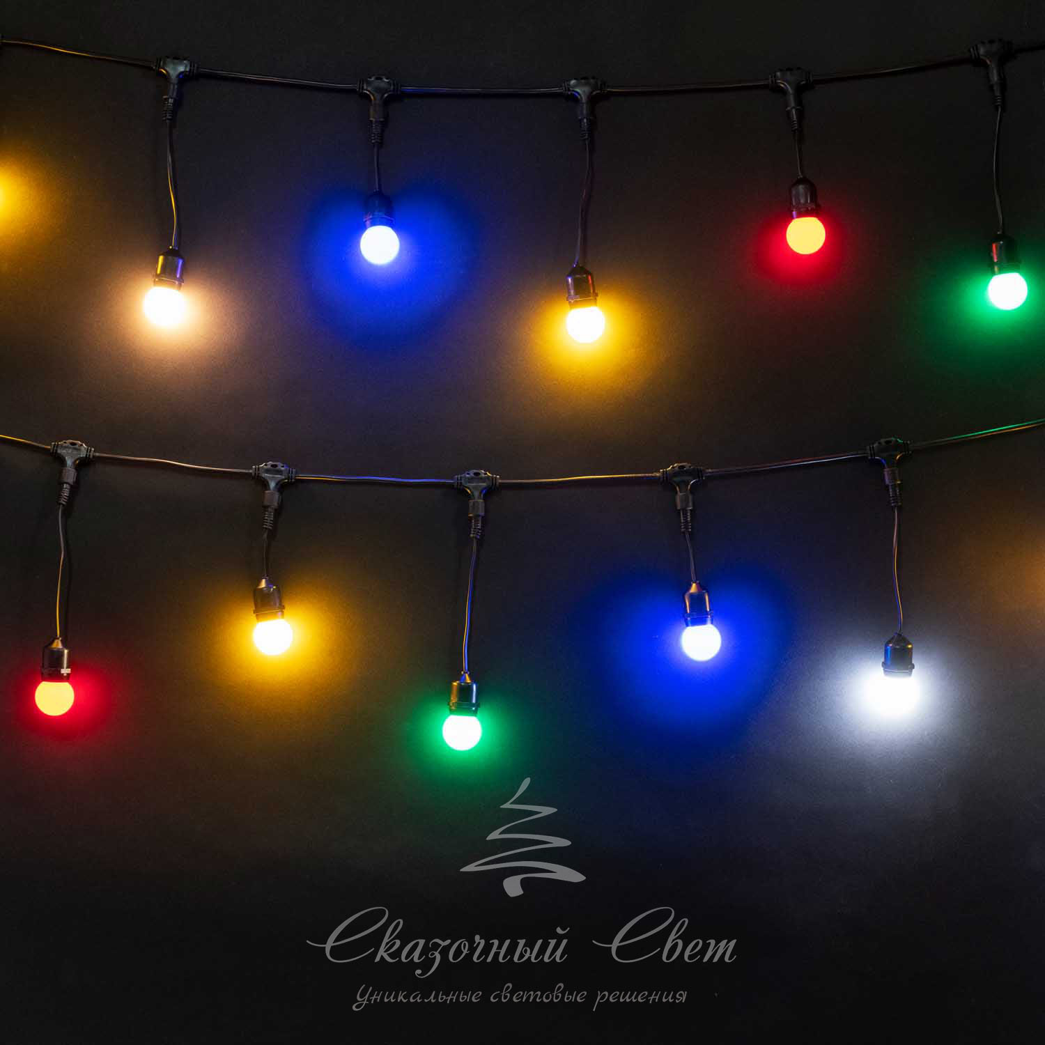 Комплект гирлянд Unibelt Cafe 5 метров, шаг 25 см, черный провод, светильник, уличный купить в интернет-магазине Сказочный свет