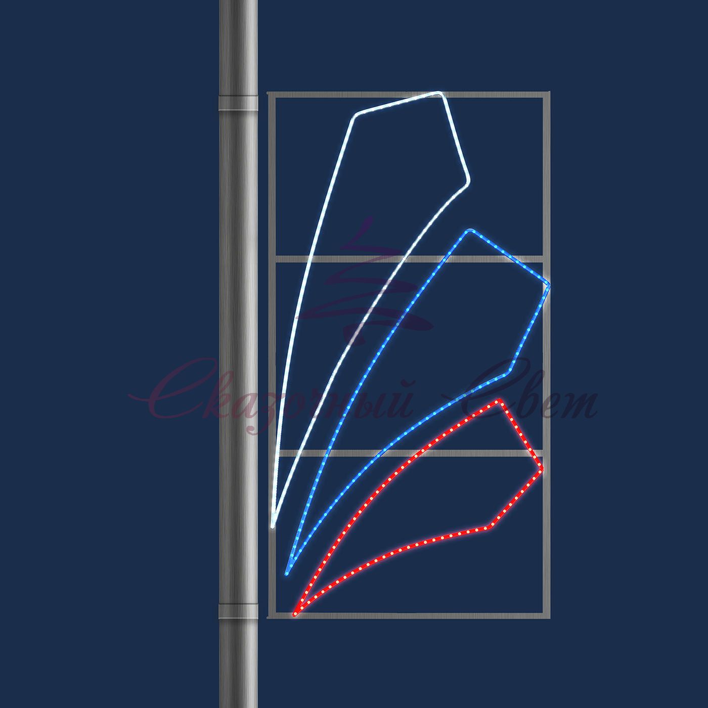 Световые консоли на алюминиевом каркасе — применяются для праздничной иллюминации городских улиц, пешеходных зон, площадей, парков и скверов. Распространенное украшение, монтируется на столб освещения с помощью бандажной ленты и скрепы. Прочный и лёгкий каркас изделия не ржавеет и не требует покраски. Гирлянды профессиональной серии ярко светят и выдерживают температуру до -50 градусов. Светодиодная конструкция поможет воплотить любую идею по оформлению города в реальность.